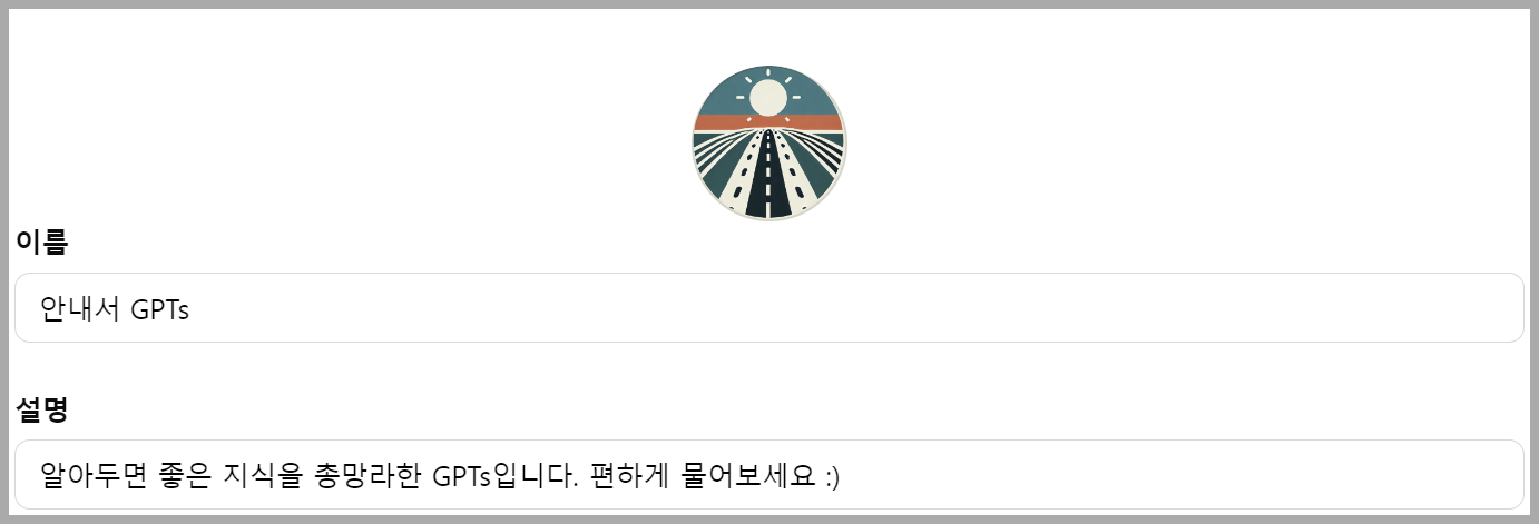 다음으로, GPTs의 이름과 설명을 입력합니다.