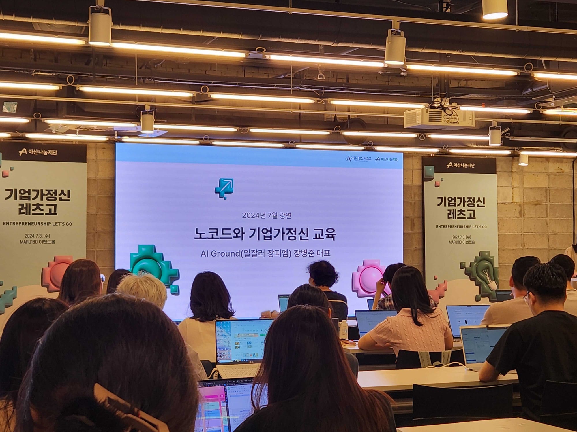 아산나눔재단에서 진행된 이번 교육은 '티처프리너' 기업가 정신을 가진 선생님들을 대상으로 하여 매우 열정적인 분위기 속에서 이루어졌습니다. 학습자들은 노코드 트렌드 및 한국의 노코드 비즈니스 사례를 배우고, 노코드 툴을 직접 사용해보는 실습도 진행했습니다. 또한, 기업가정신 강의를 통해 이를 실제 비즈니스에 적용하는 방법도 학습했습니다.