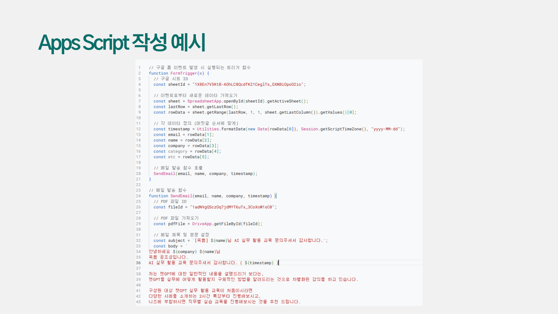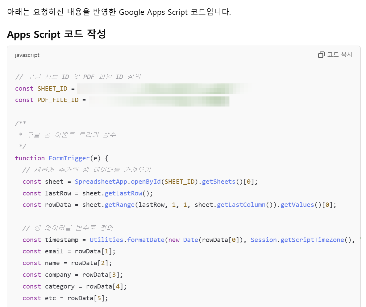 ChatGPT가 생성한 코드를 받았다면, 이제 실제 Apps Script에 적용할 단계입니다.