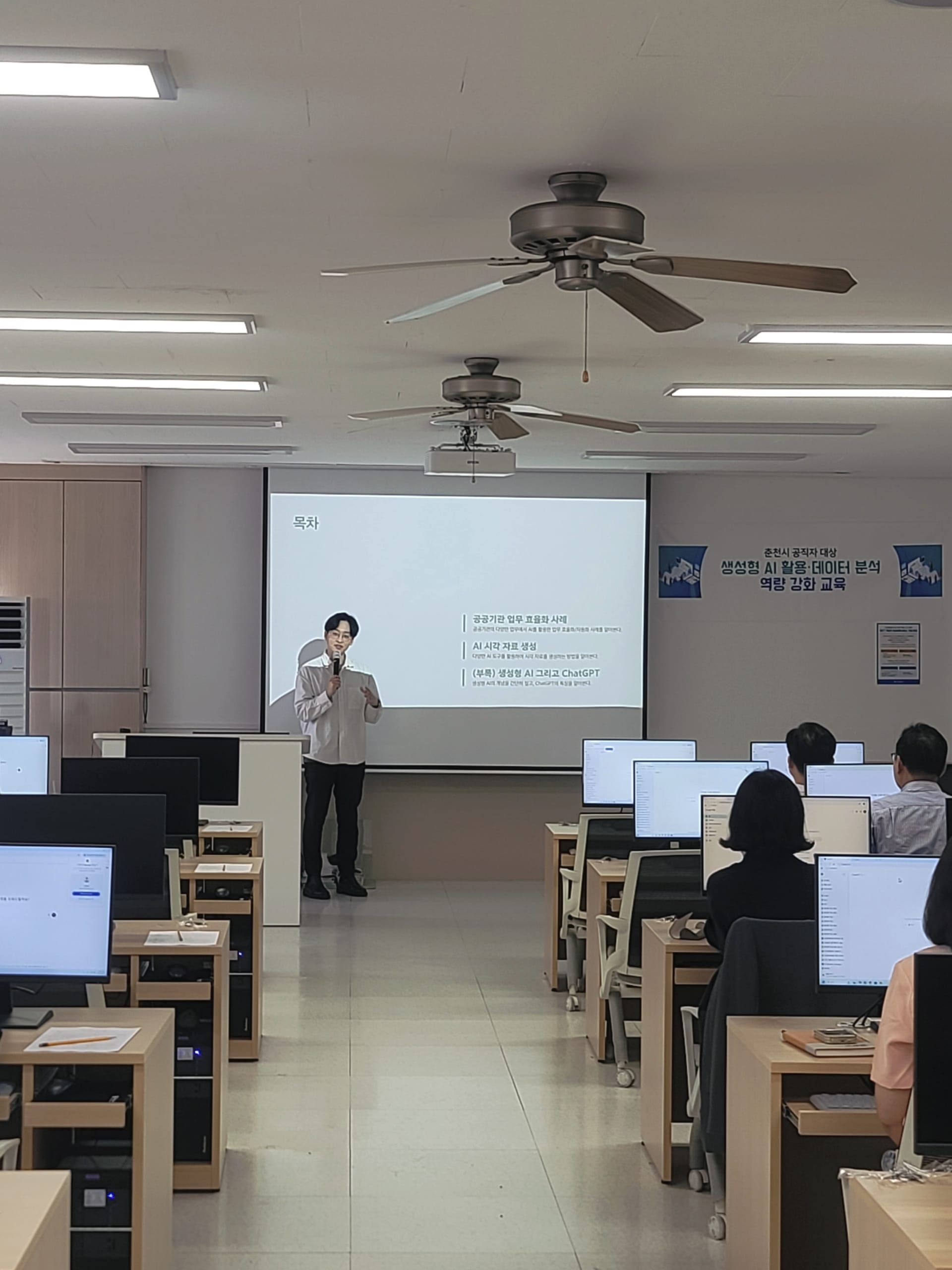 춘천시청 공무원을 대상으로 생성형 AI 실습 교육을 진행하며, 공공분야 적용 사례와 시각자료 제작을 체험했습니다.