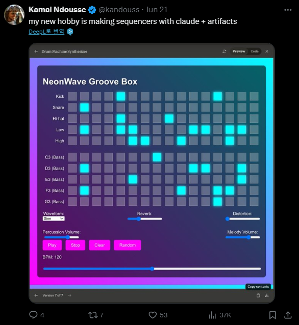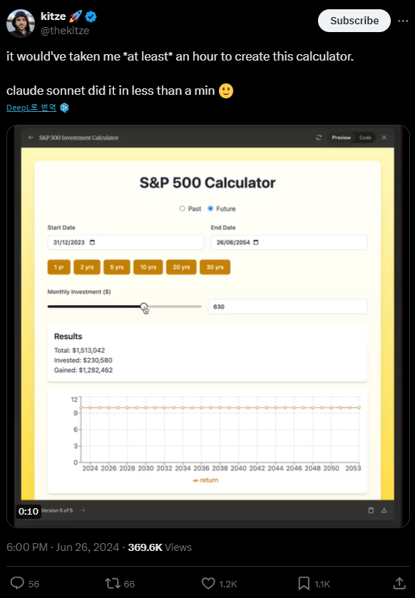 - Claude 3.5 Sonnet의 코딩 능력과 Artifact 기능