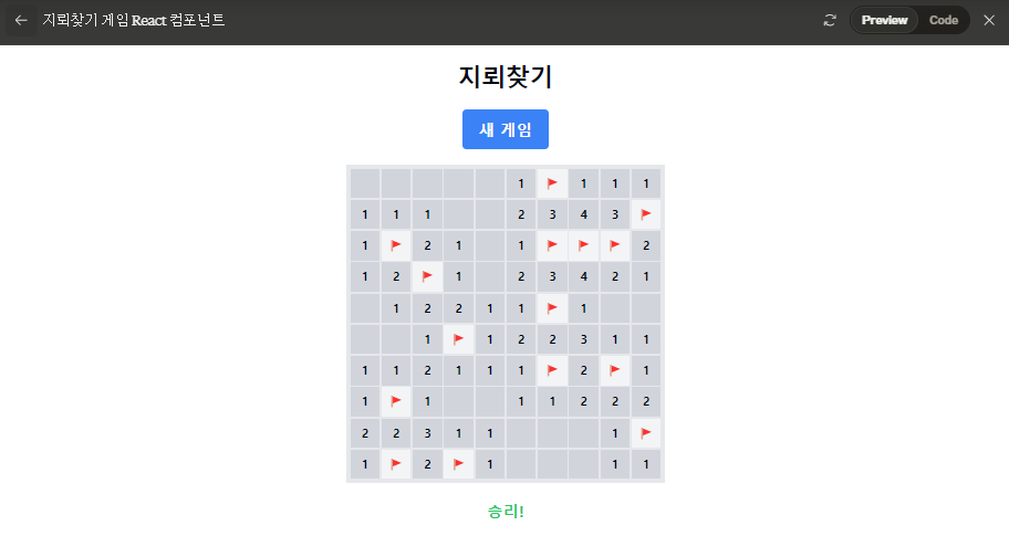 제가 직접 지뢰찾기 게임을 만들어봤는데, 잘 돌아가더라고요!