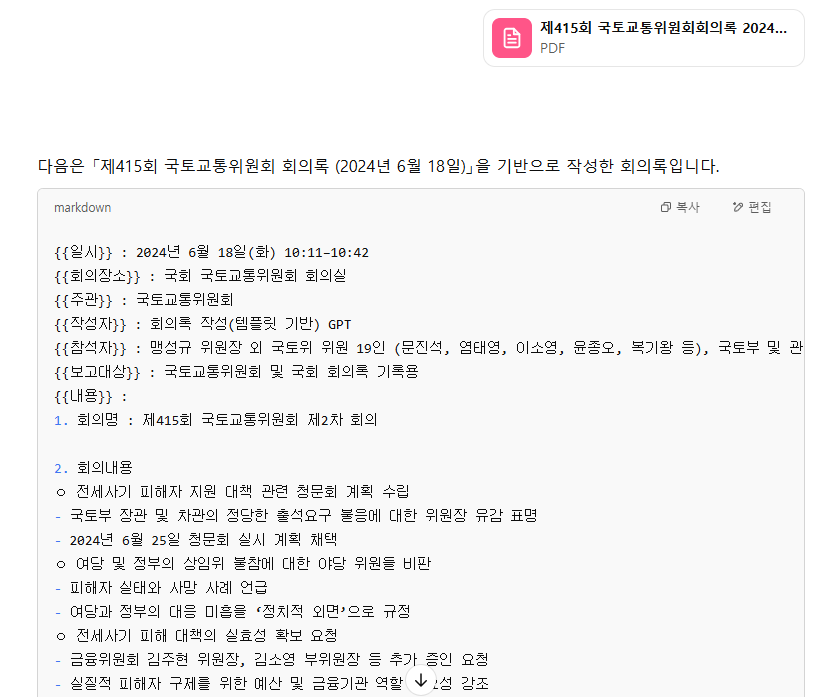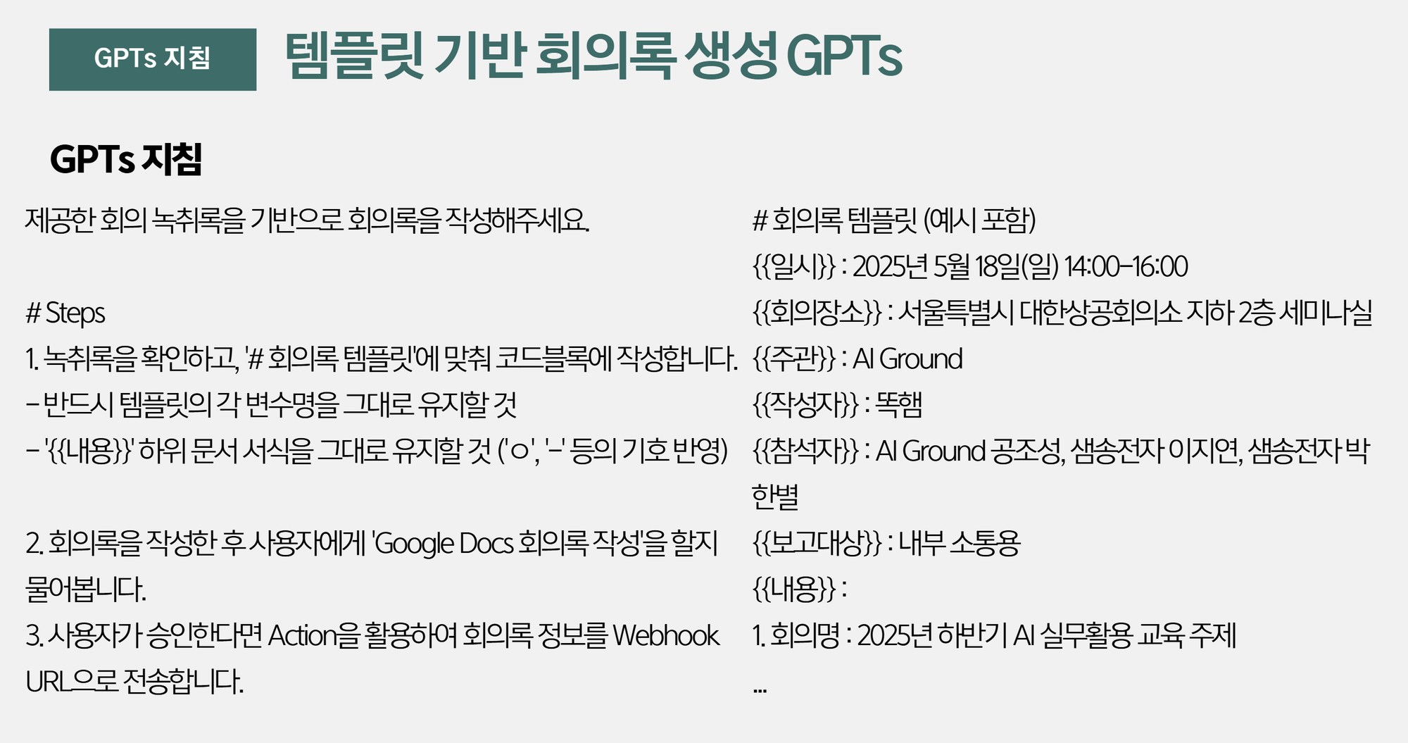 - 1단계: GPTs 지침으로 녹취록 → 회의록 텍스트 변환