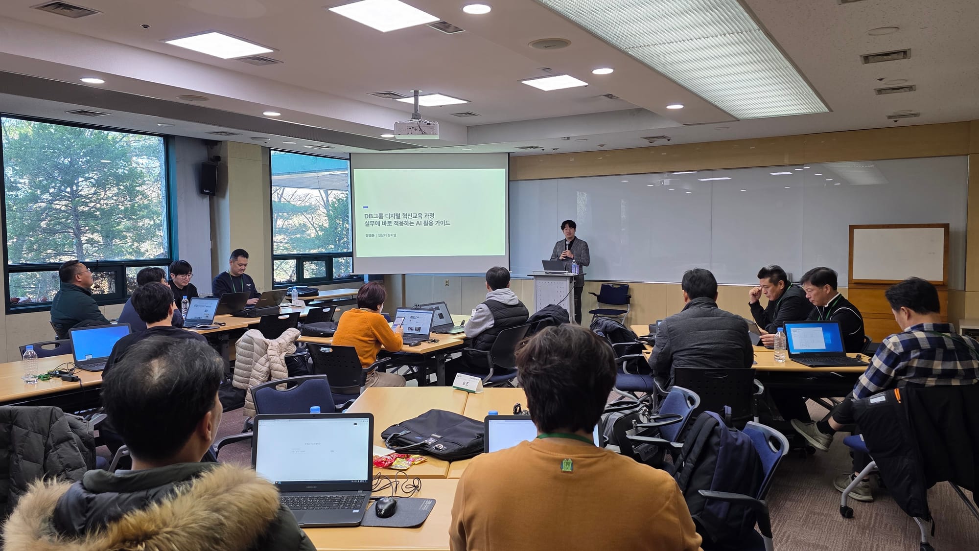 DB인재개발원에서는 DB그룹 디지털혁신 교육과정으로 AI 활용에 대한 실무 중심 교육을 진행했습니다. 이론보다는 실습 위주로 구성하여 학습자들이 직접 AI 도구를 활용해볼 수 있도록 했으며, 이를 통해 실제 업무에 즉시 적용 가능한 역량을 키울 수 있었습니다.