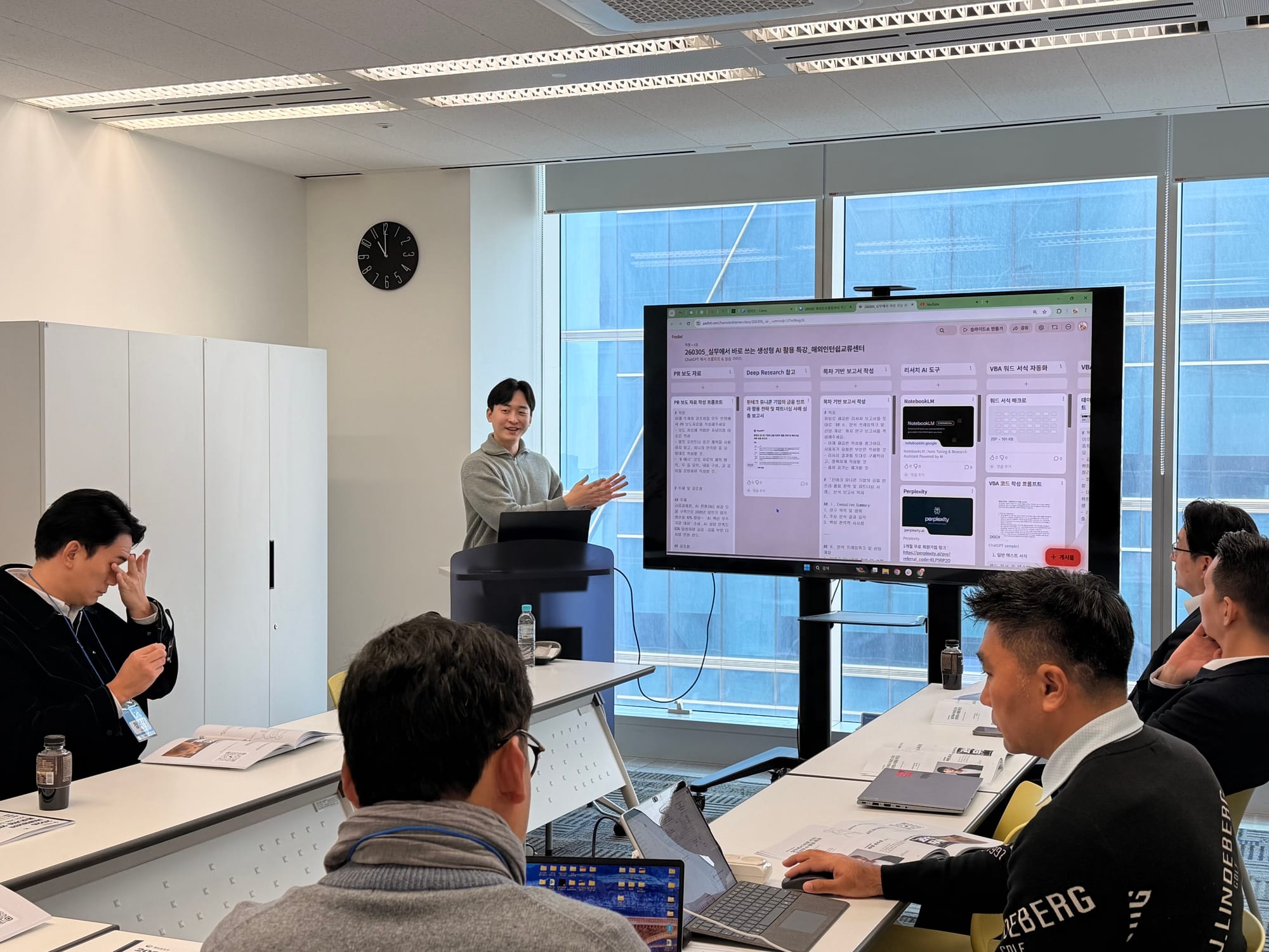 해외인턴쉽교류센터에서 실무에서 바로쓰는 생성형 AI활용 특강을 진행하였습니다. 짧은 시간이지만 실무에 맞는 내용으로 구성되어 알찬 시간이었습니다.