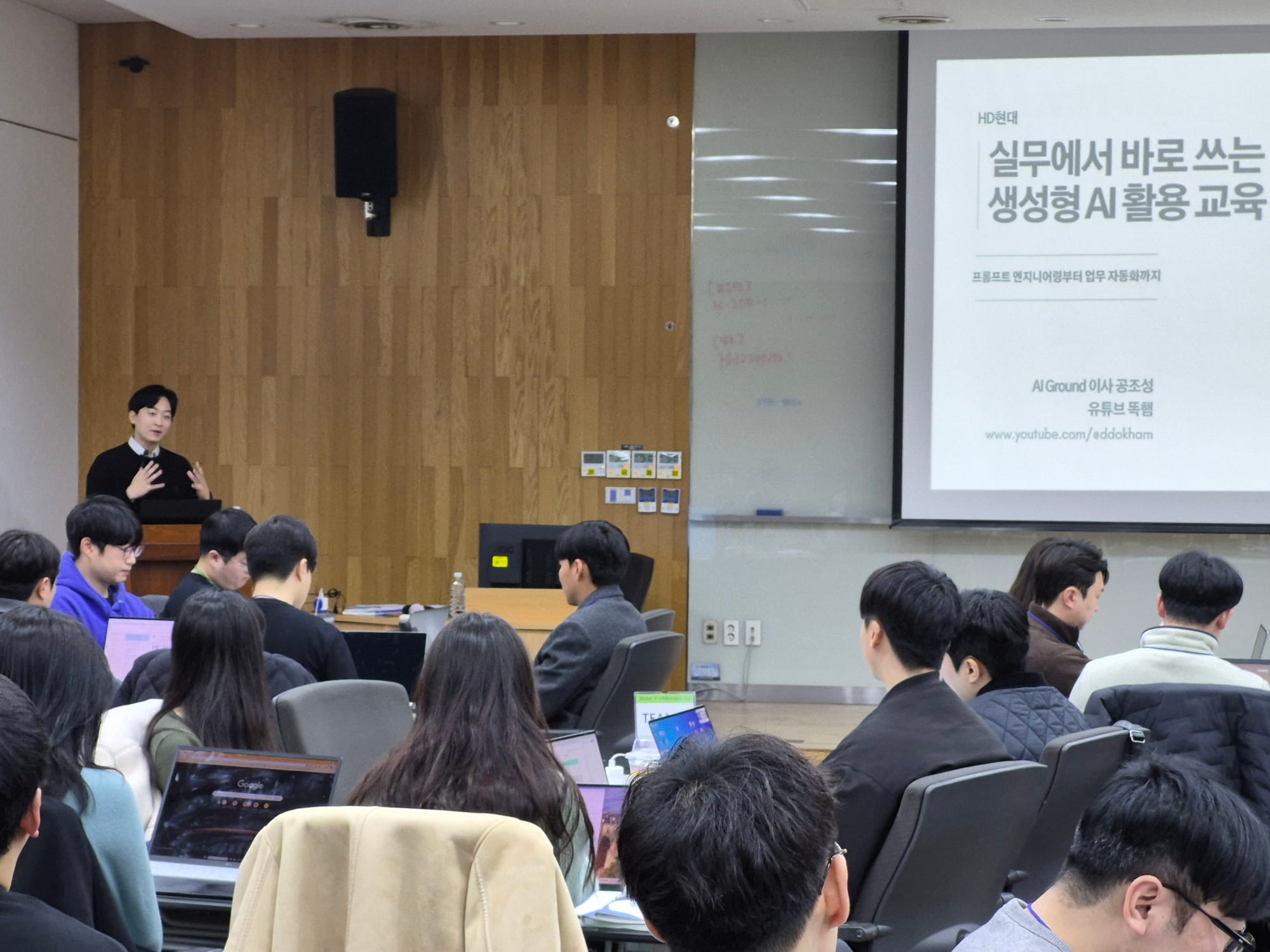 현대중공업에서 실무에서 바로쓰는 생성형AI활용교육을 진행하였습니다. 짧은 시간이지만 실제적용 사례와 시연하는 구성되어 알찬 시간이었습니다.