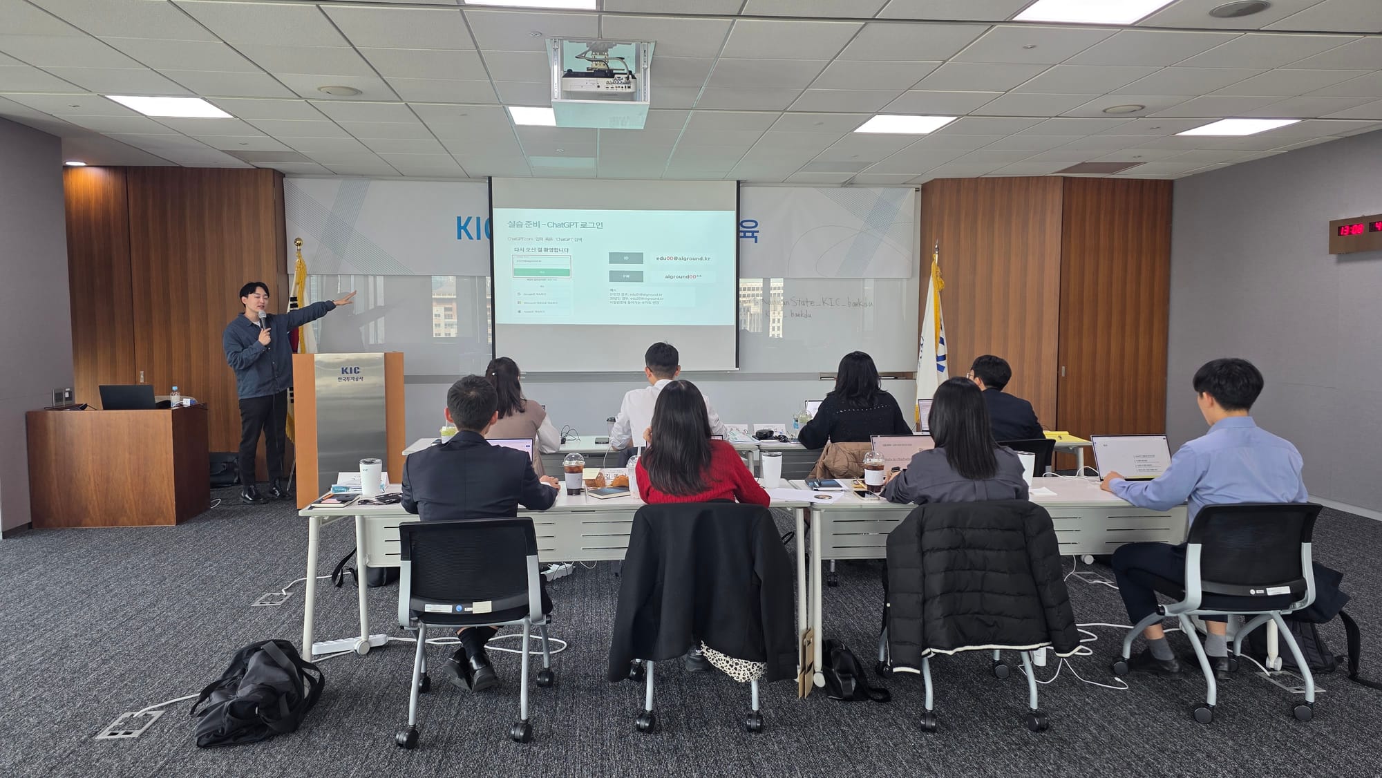 한국투자공사에서 신입사원 대상 실무에서 바로쓰는 ChatGPT 실습교육이 열렸습니다. 실습 중심으로 진행되어 학습자들이 흥미를 갖고 참여하였으며, 교육 만족도가 높았습니다.