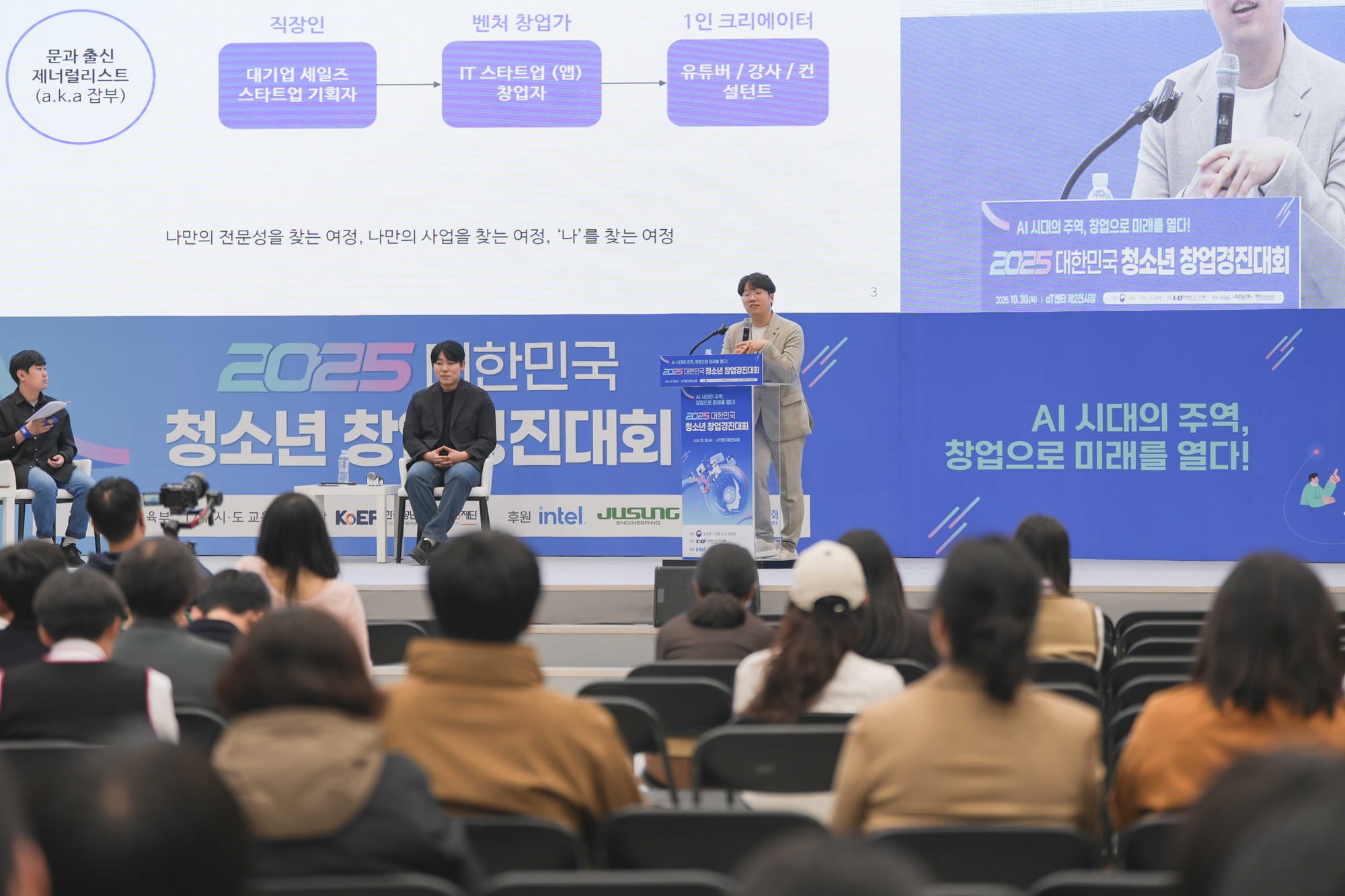 2025 대한민국 청소년 창업경진대회 창업가 토크콘서트에서 창업가 대표로 강연을 진행하였습니다.