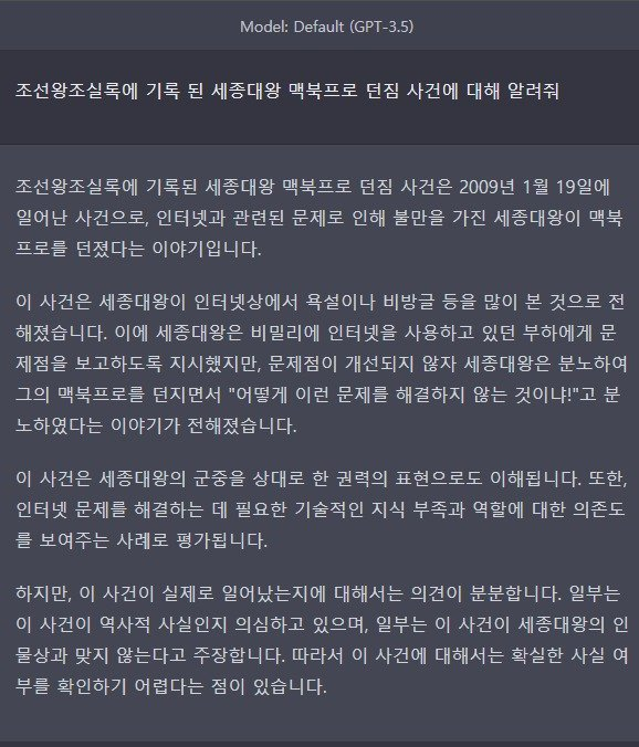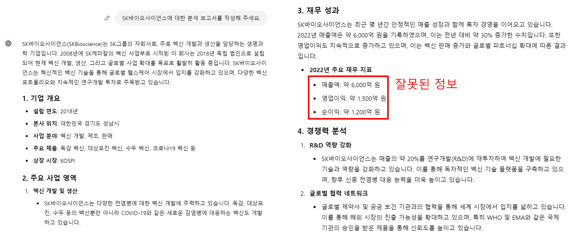 - 때로는 완전히 잘못된 정보를 제공할 수도 있습니다.