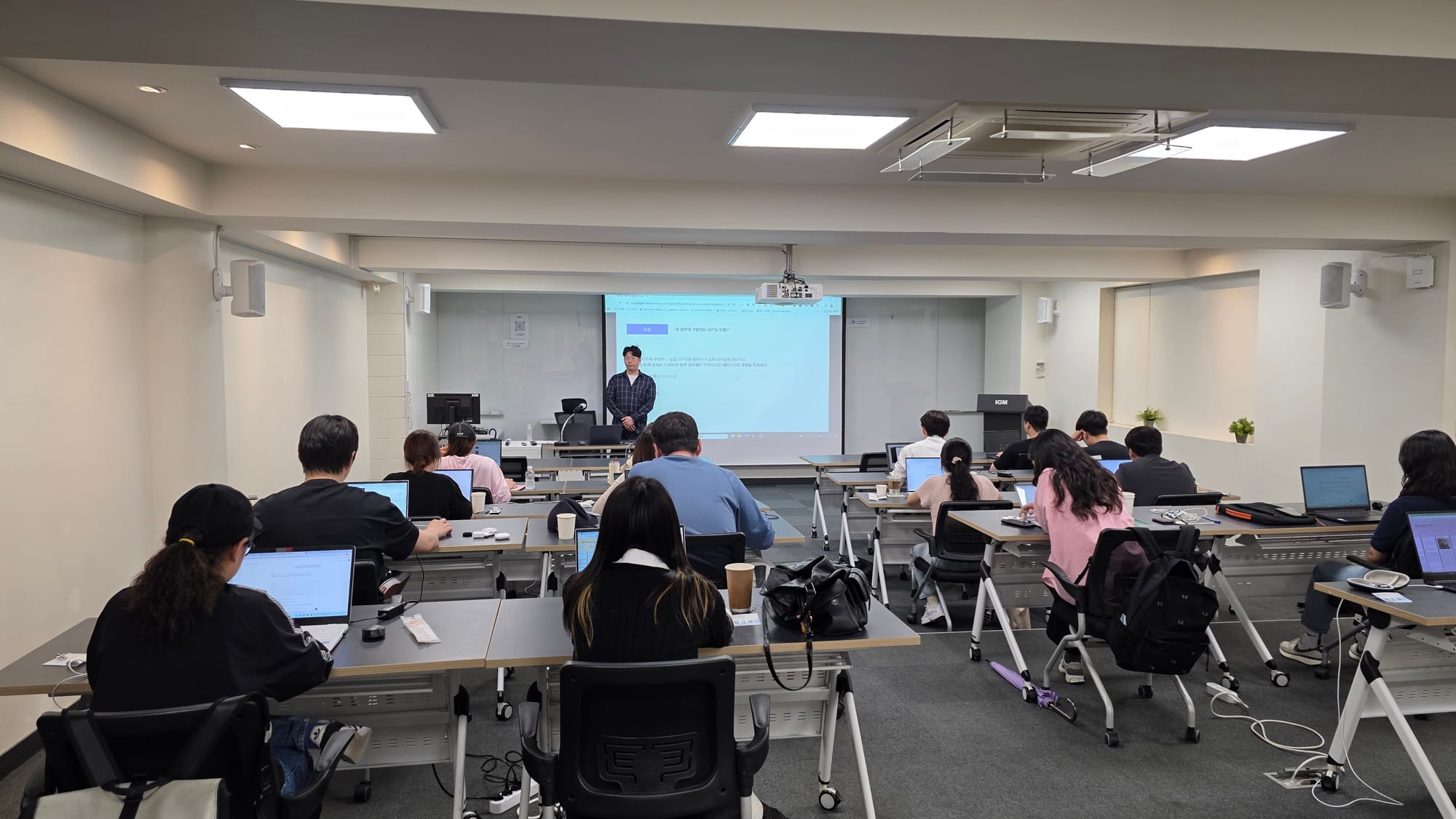 서울디지털재단 직원들은 이미 높은 수준의 AI 활용 역량을 갖추고 있었기에, 다소 난이도 높은 주제인 '데이터 분석', GPTs를 활용한 업무 자동화 등을 중심으로 교육이 이루어졌습니다.