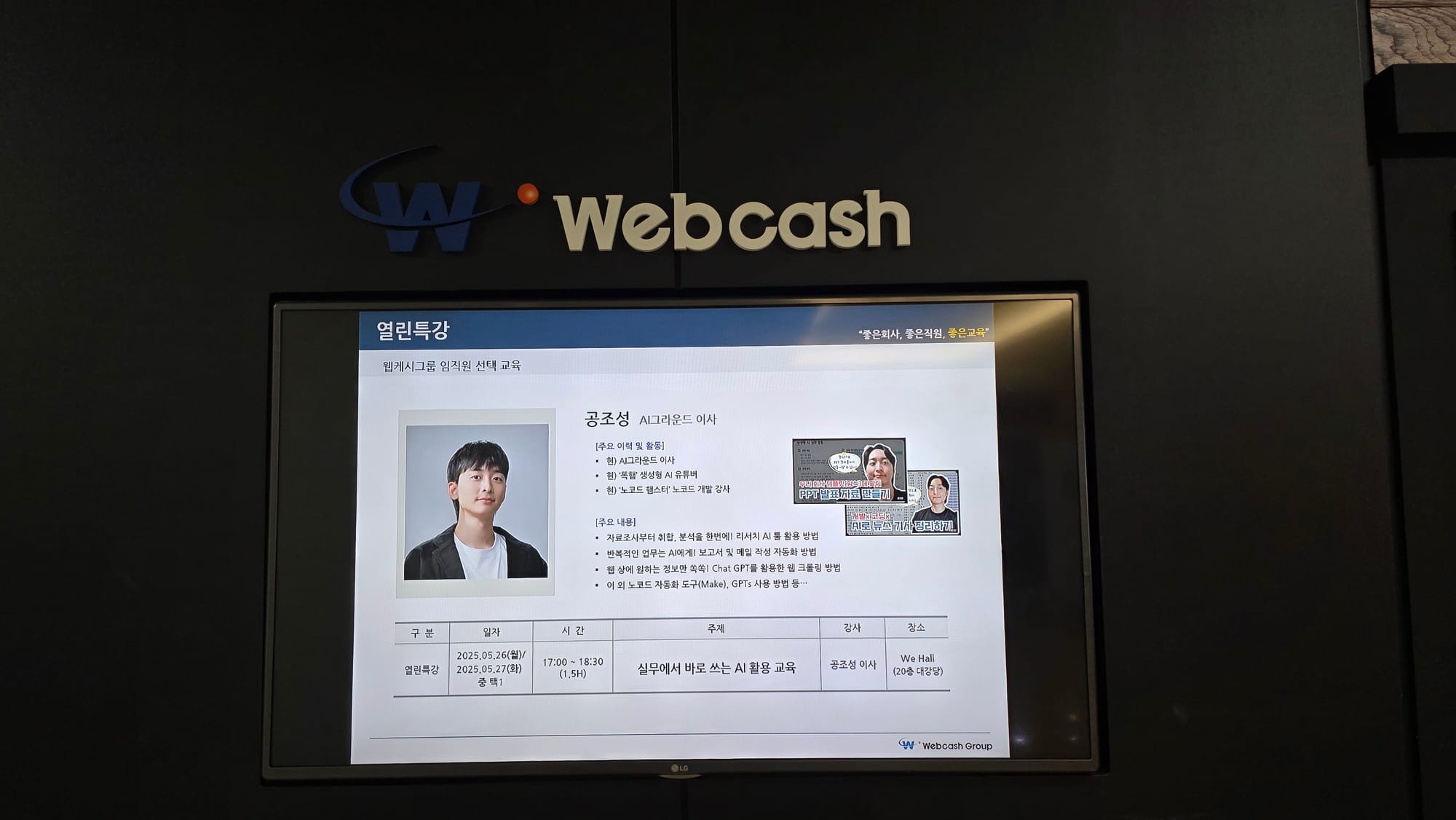 오늘은 웹케시에서 실시한 실무에서 바로 쓰는 ChatGPT 활용 특강 교육 프로그램을 소개해드리고자 합니다.